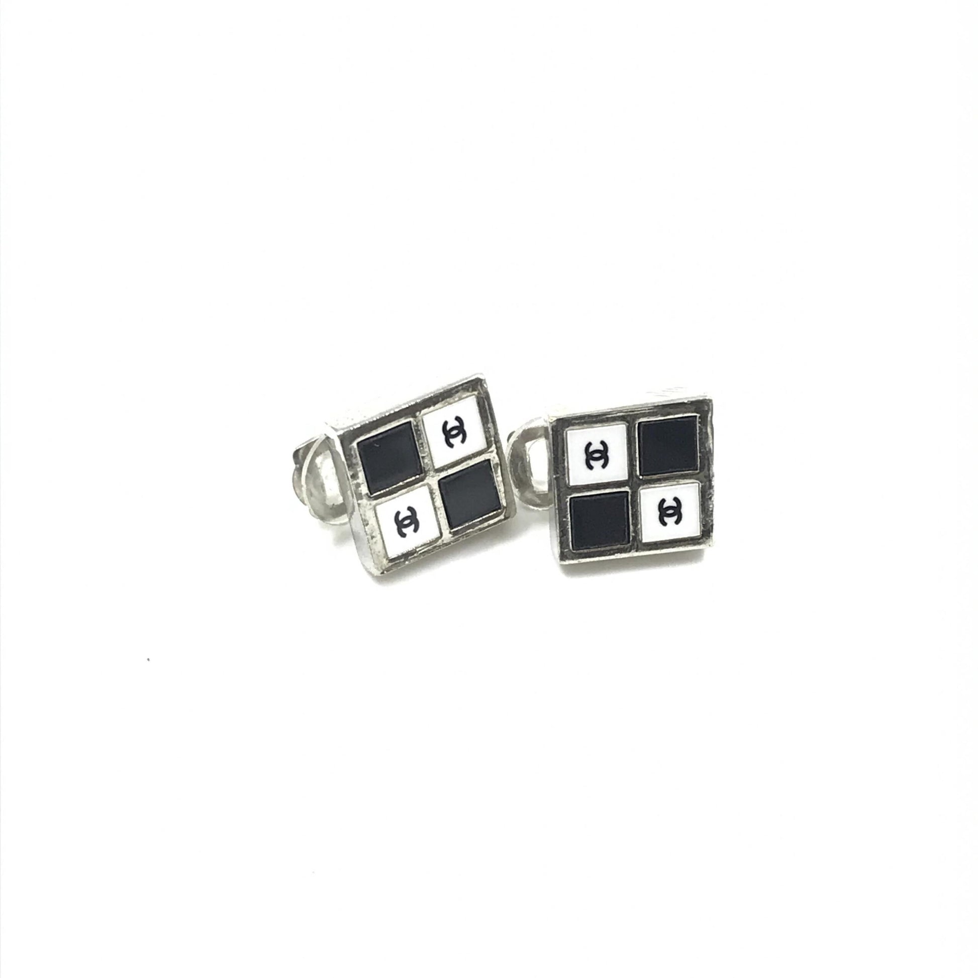 Chanel Coco Mark Earrings Black/White/Silver