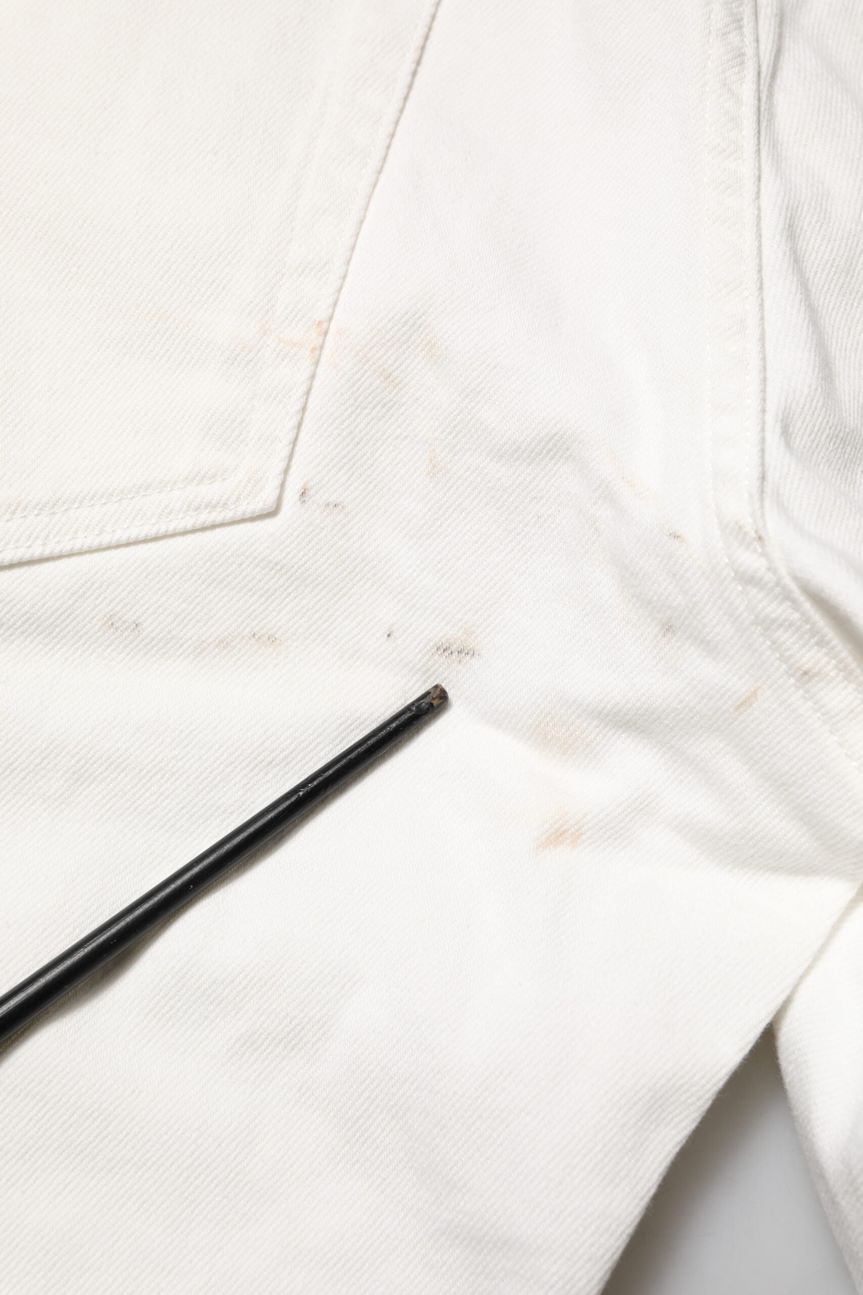 This item has a minor defect, there are stains on the front and back side (see pictures for details).