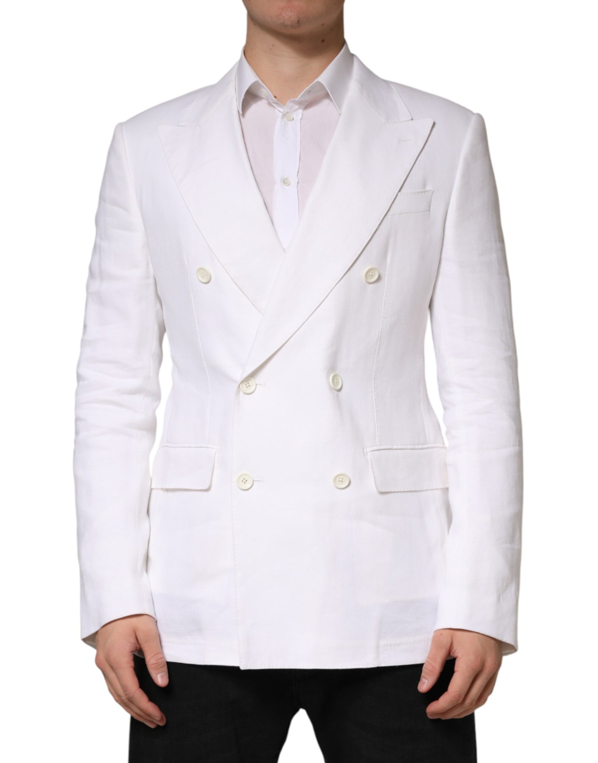 Dolce & Gabbana White Linen Double Breasted 2 Button Blazer
