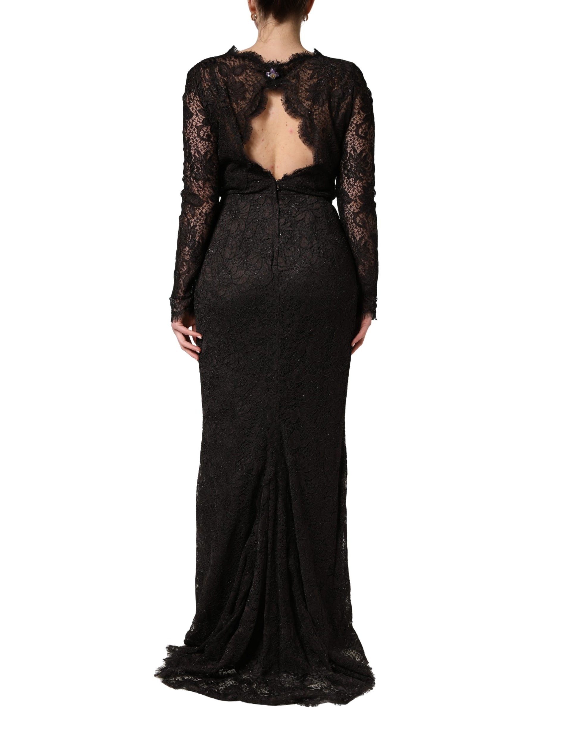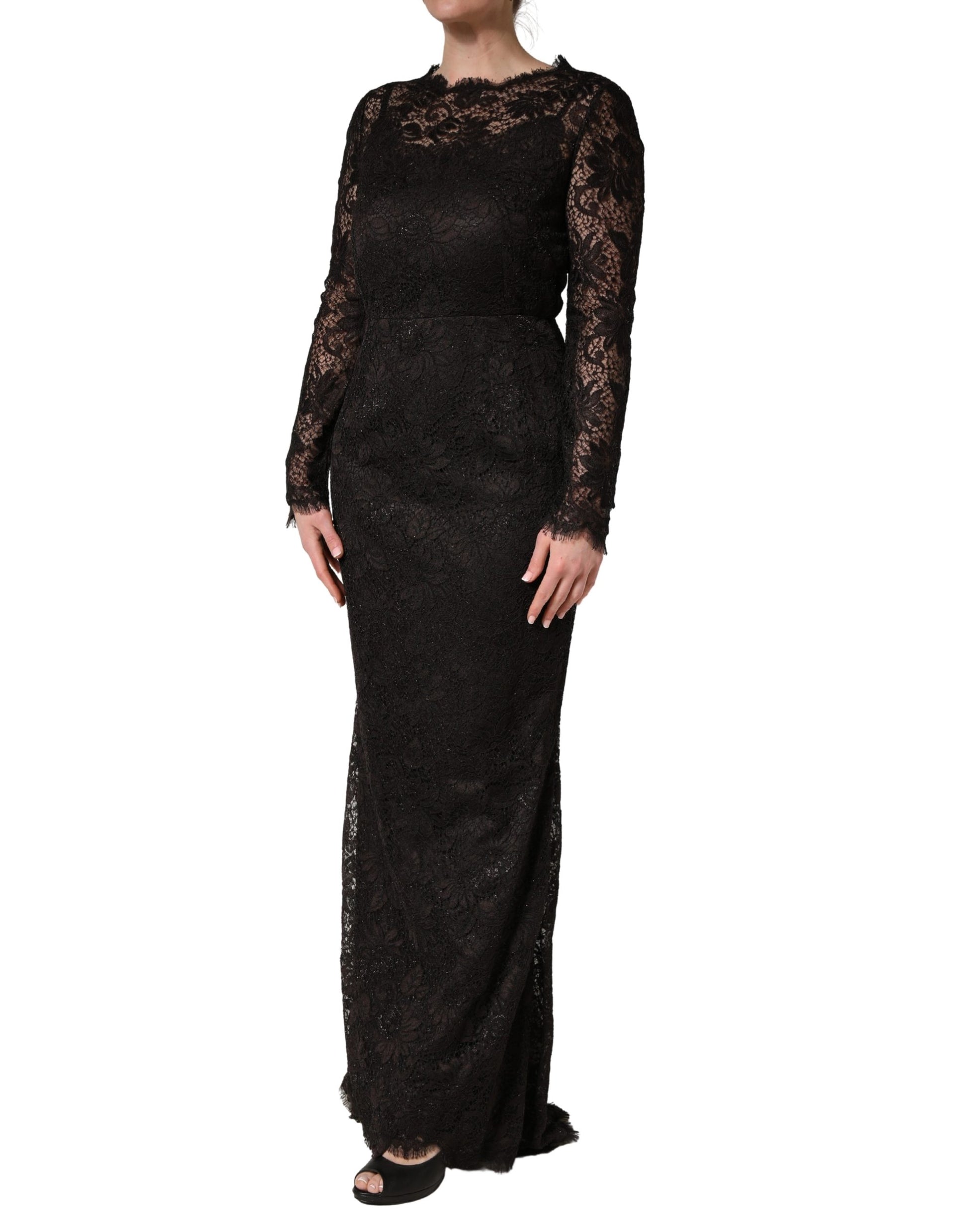 Dolce & Gabbana Black Floral Lace Sheath Long Maxi Dress