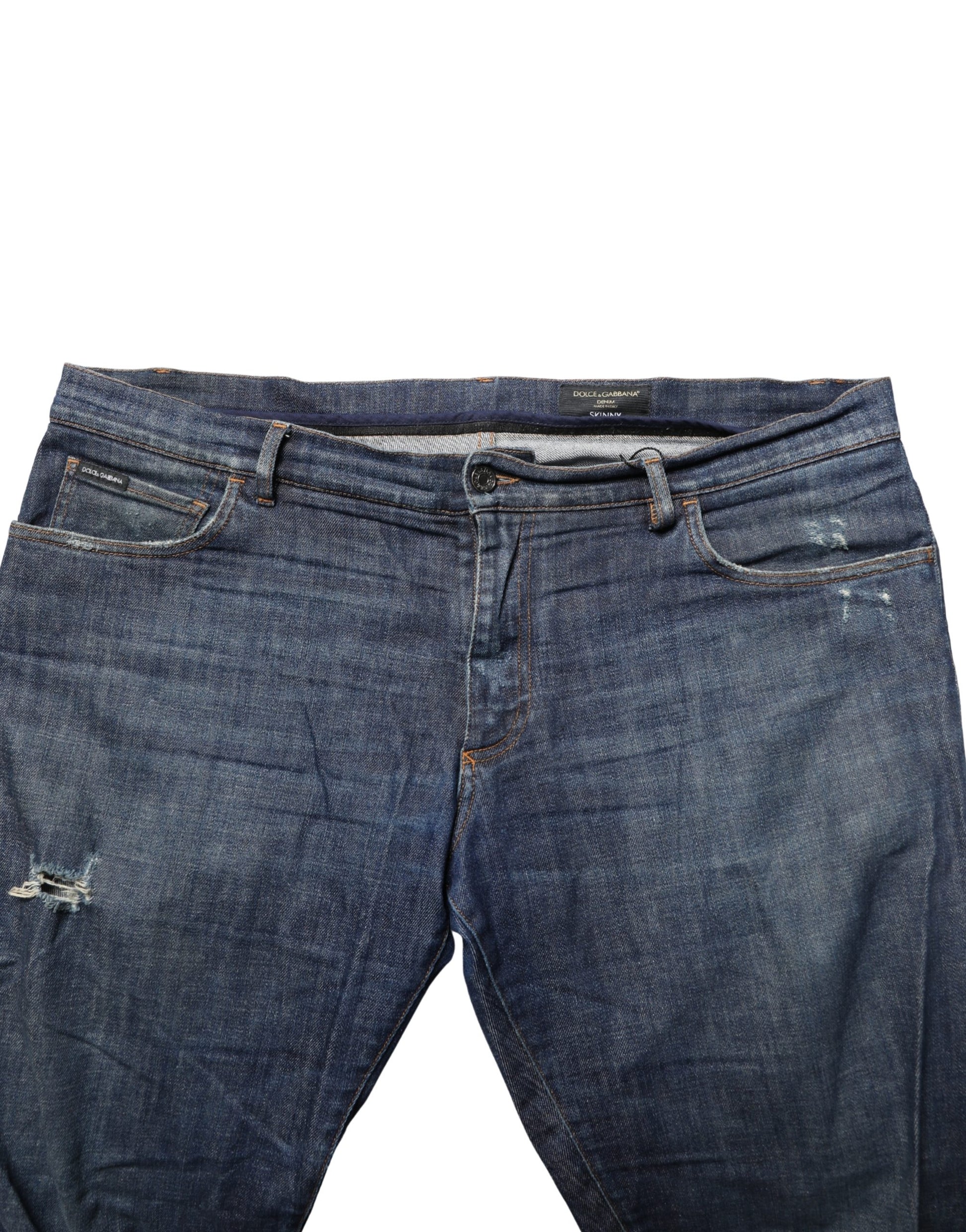Dolce & Gabbana Dark Blue Washed Skinny Cotton Denim Jeans