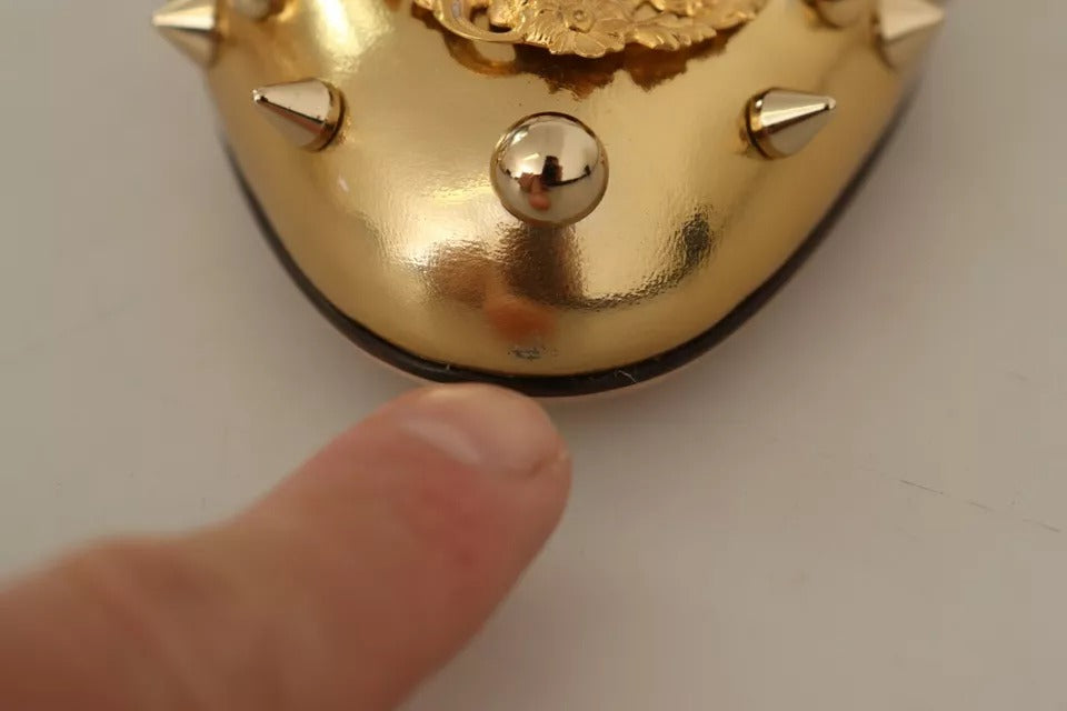 Dolce & Gabbana Gold Studs Vally Slingback Sandals Shoes