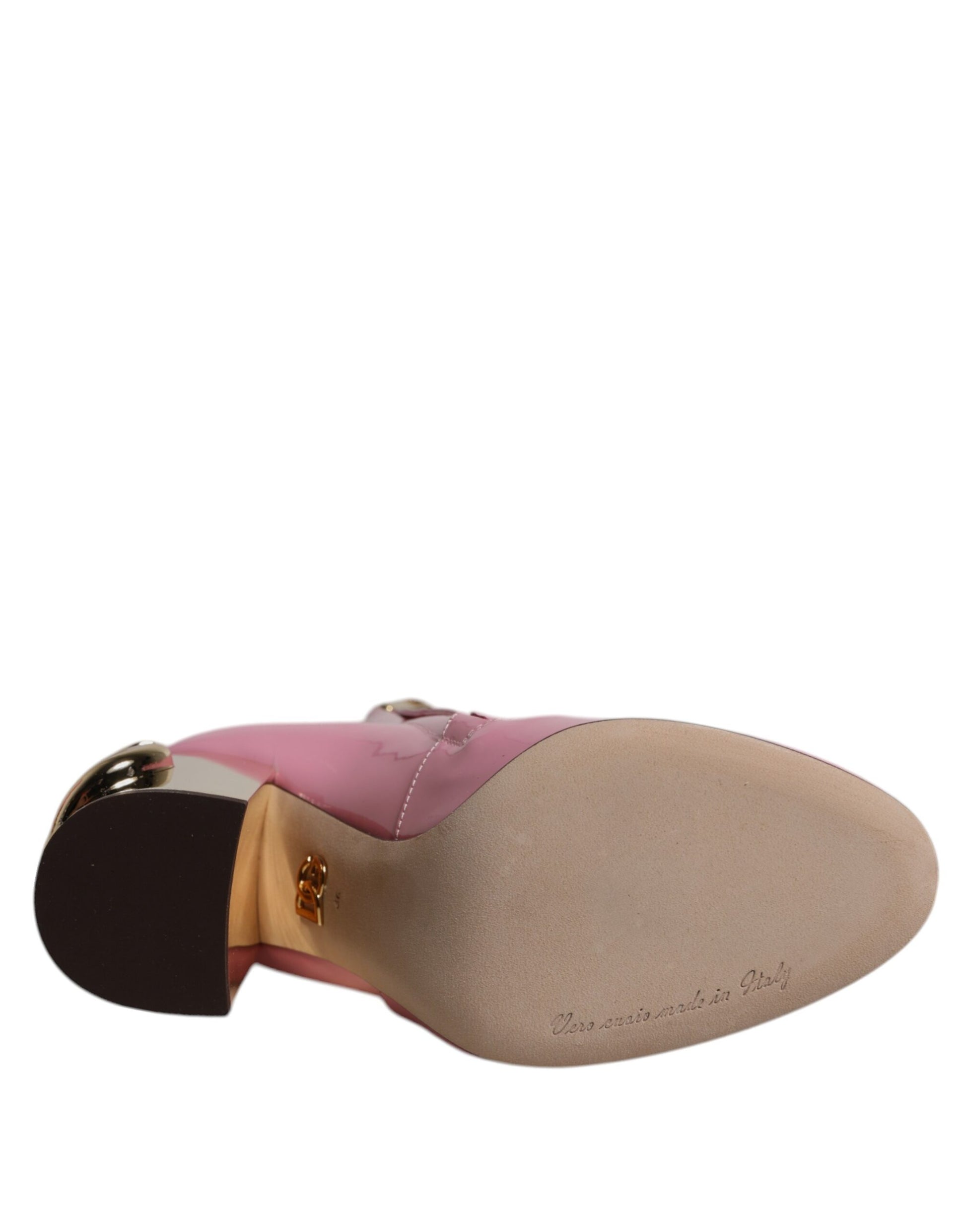 Dolce & Gabbana Pink Patent Leather Heel Mid Calf Boots Shoes