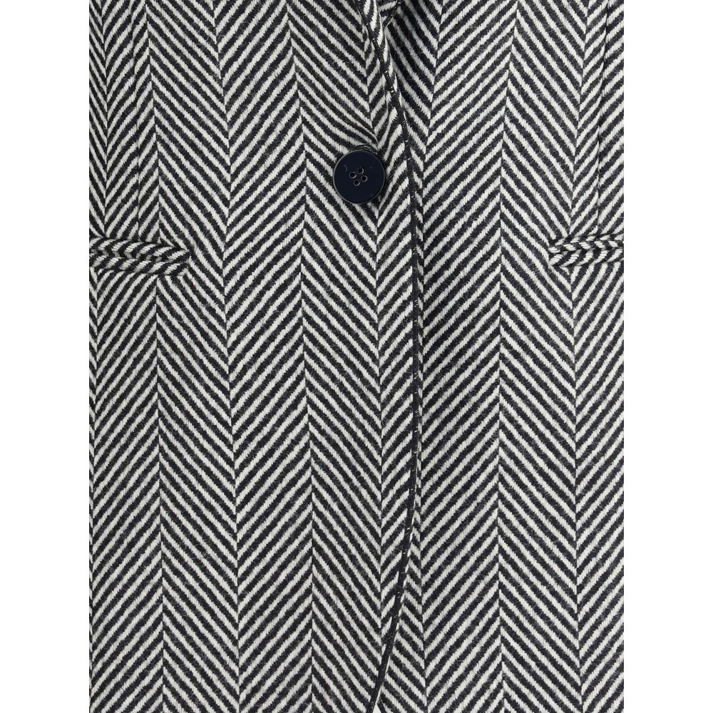The Chic Chevron Wool Jacket by Forte Forte combines precision and refinement with a timeless allure. The single-breasted closure and peaked lapel recall classic tailoring, while the welt pockets add discreet functionality to the clean design. The subtle chevron pattern enhances the elegance of the fabric, making the piece ideal for a contemporary and sophisticated style.