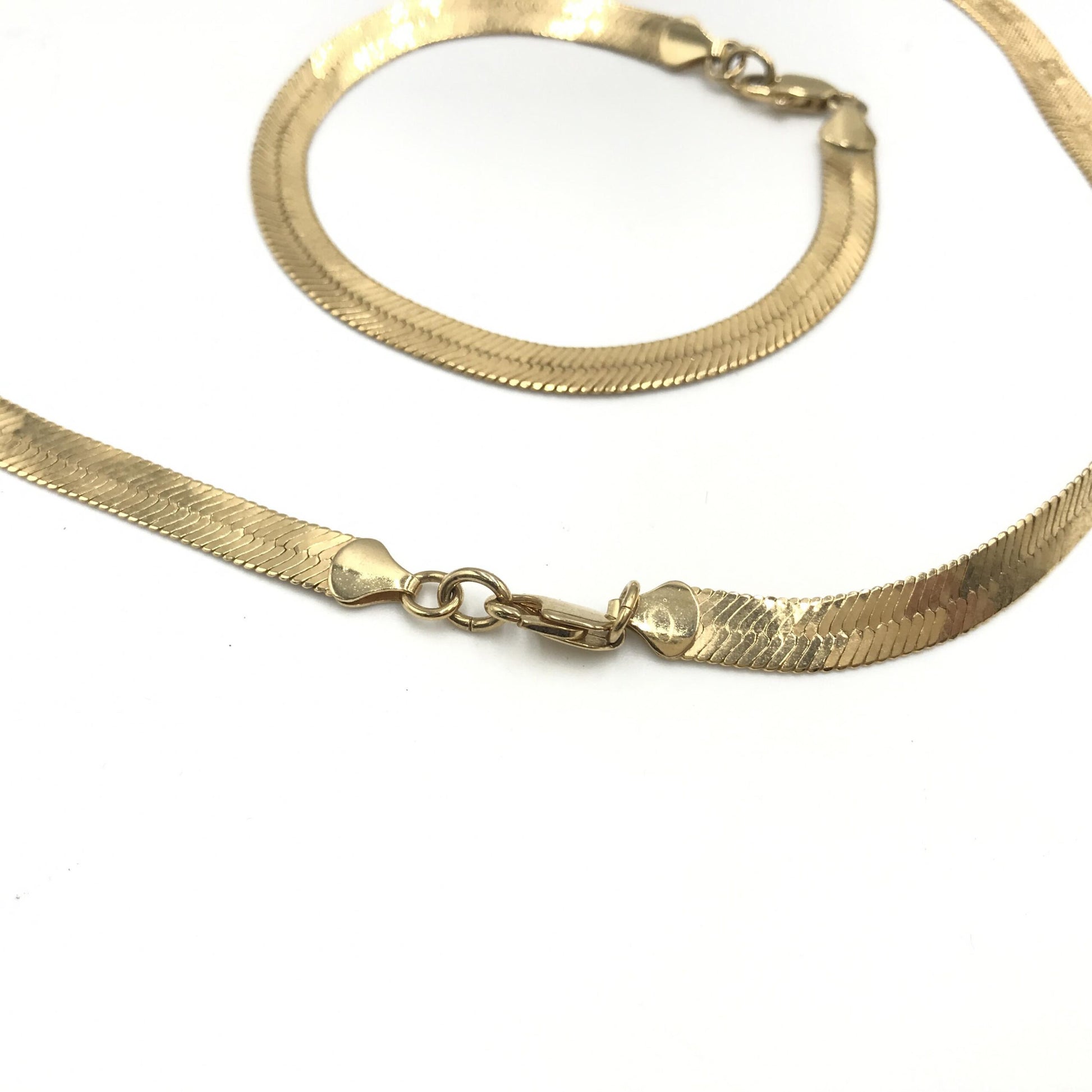The herringbone design, known for its intricate and fluid pattern, adds a touch of classic luxury to any ensemble. Its gold-plated finish exudes a warm, radiant glow, making it a versatile accessory suitable for both day and evening wear. Despite previous use, the bracelet maintains its charm and allure, with no odor present, ensuring a pleasant wearing experience.